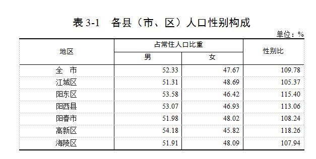 根據(jù)第七次全國人口普查結(jié)果,現(xiàn)將2020年11月1日零時我市6個縣(市、區(qū))的人口性別構(gòu)成情況公布如下: