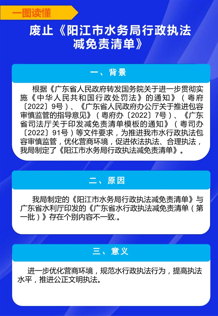 一圖讀懂陽江市水務(wù)局關(guān)于廢止《陽江市水務(wù)局行政執(zhí)法減免責(zé)清單》