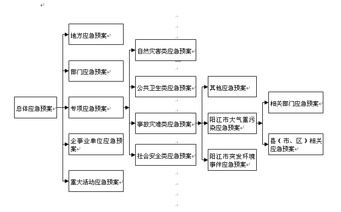 《陽江市大氣重污染應(yīng)急預(yù)案》屬于陽江市應(yīng)急預(yù)案體系中的專項預(yù)案。《陽江市大氣重污染應(yīng)急預(yù)案》下一級預(yù)案包括各相關(guān)部門和縣、市(區(qū))人民政府制定的本部門和縣、市(區(qū))相應(yīng)的應(yīng)急預(yù)案。《陽江市大氣重污染應(yīng)急預(yù)案》與相關(guān)應(yīng)急預(yù)案的關(guān)系見附件1。
