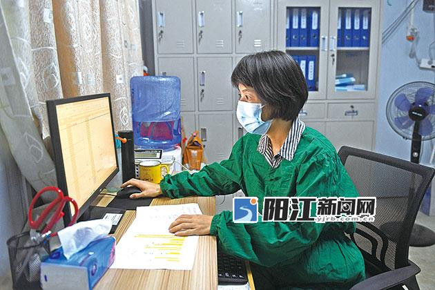 14日零時(shí)許,脫下防護(hù)裝備的陳俏在電腦前登記樣本檢測(cè)信息。 宋福亮 攝